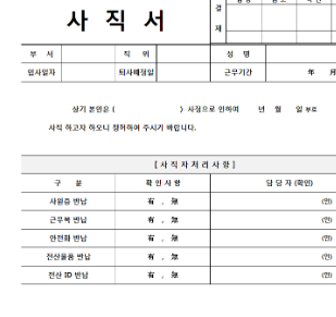 사직서 양식은 회사별로 정해져 있는 양식이 있기 때문에